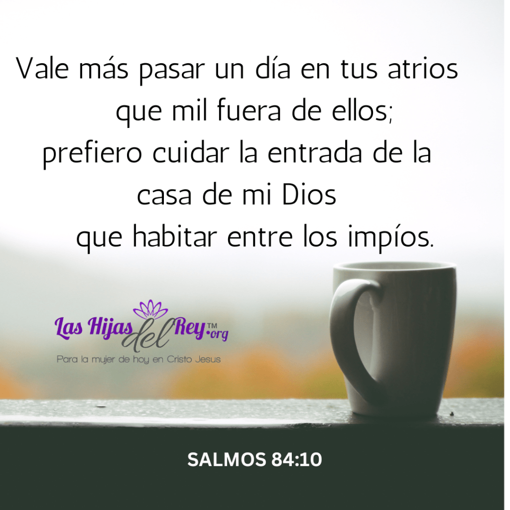 Salmos 84:10 «Vale más un día en tus atrios que mil fuera de ellos; prefiero cuidar la entrada de la casa de mi Dios que habitar entre los impíos.»