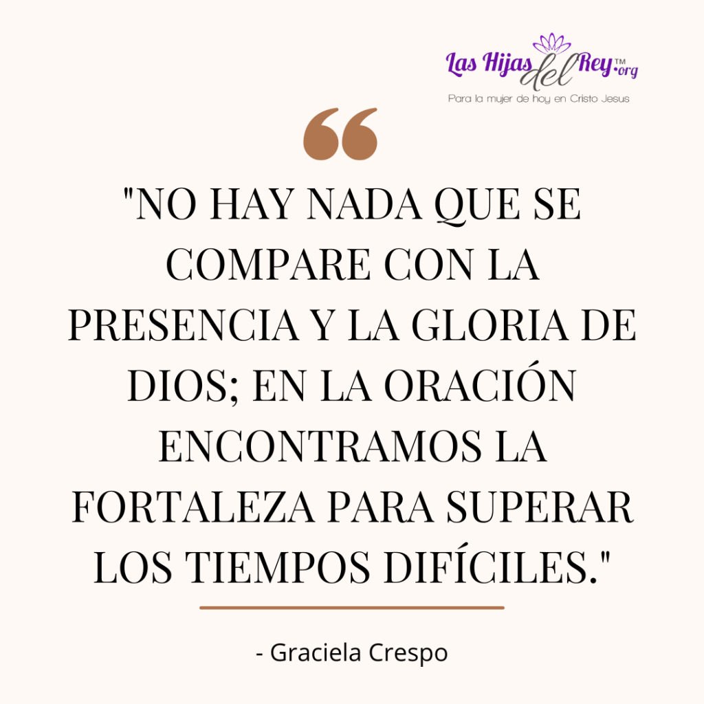 Querida hija del Rey, te aconsejo que ores, que clames y que llores. Entra en tu cuarto secreto y cierra la puerta. Allí es donde nos preparamos. No se turbe tu corazón, confía en Jesús porque Él ha vencido. Cuando oramos, Dios nos muestra qué hacer. Él nos ayuda y nos guía. La fuerza que necesitamos y la sabiduría provienen de Él. Siempre que hablo con mi madre o mis hermanas, ellas me dicen: «Busca a Dios y verás cómo Él obra.»